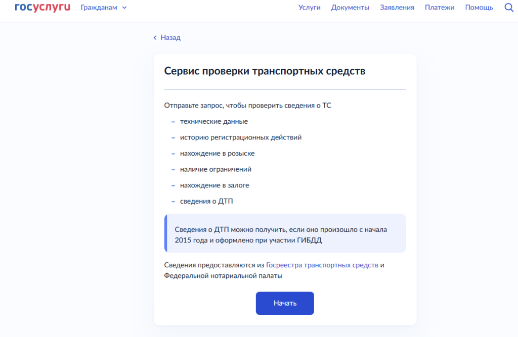 - Участие в ДТП (с 2015 года, только зарегистрированные ГИБДД).